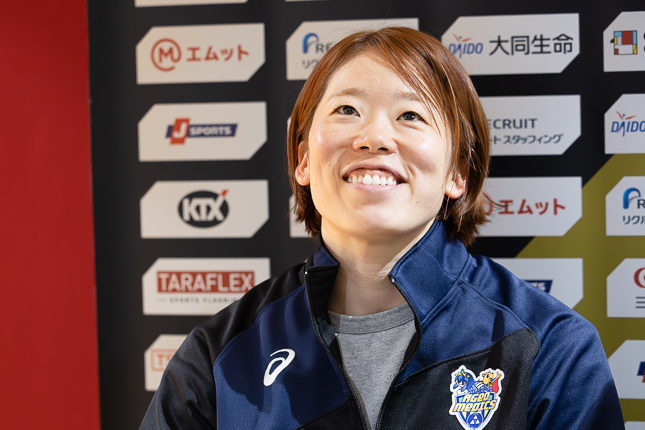 リーグ戦は約半年ぶり。メディックスのサポーターの皆さん、バレーボールファンの皆様の前でプレーをお見せできる喜びを感じています。いよいよ開幕したんだなという思いです。