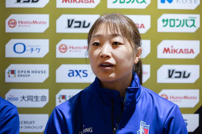 ブロックを振れていない時も多いので、相手のブロックも見ながらしっかり組み立てて、チームとのコンビネーションを合わせていけたらいいかなって思っています。