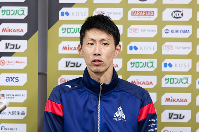 群馬グリーンウイングスさんの高さだったり、サーブの圧力がすごくて、本当に苦しいゲームでした。うちはオフェンスが持ち味のチームではあるのですが、特に今日は大工園彩夏のディフェンス、中川つかさの打たせるトスがチームをよく落ち着かせてくれたと感じています。