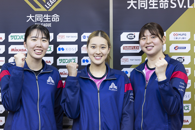 終始、大阪マーヴェラスさんのブロックディフェンスに苦しめられたところがありましたが、我慢して自分たちのオフェンスを発揮できたところはすごく良かったと思います。