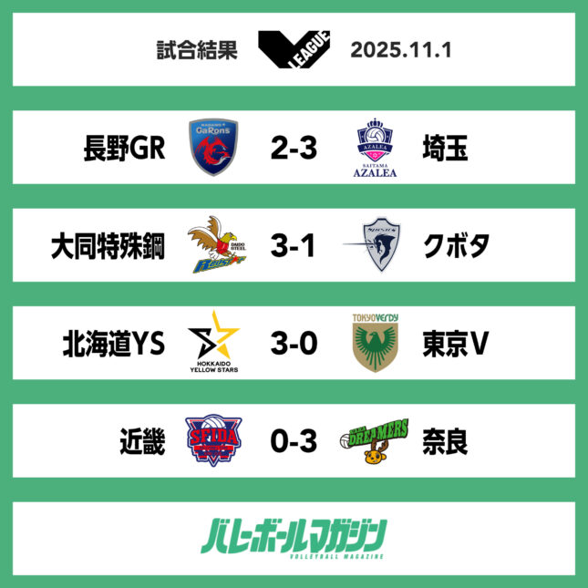 - 姫路がSAGA久光、KUROBEが群馬に敗れ、今季初黒星。NEC川崎がAstemoを3-0で破り、首位に返り咲く SV女子 [SV女子] / 2025.11.02