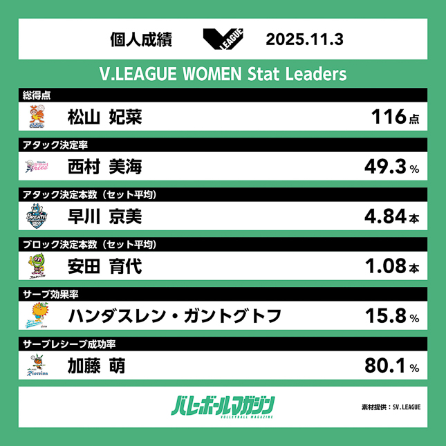 - NEC川崎が開幕8連勝。KUROBEは群馬に3-2で勝利し、1敗を守る SV女子 [SV女子] / 2025.11.03