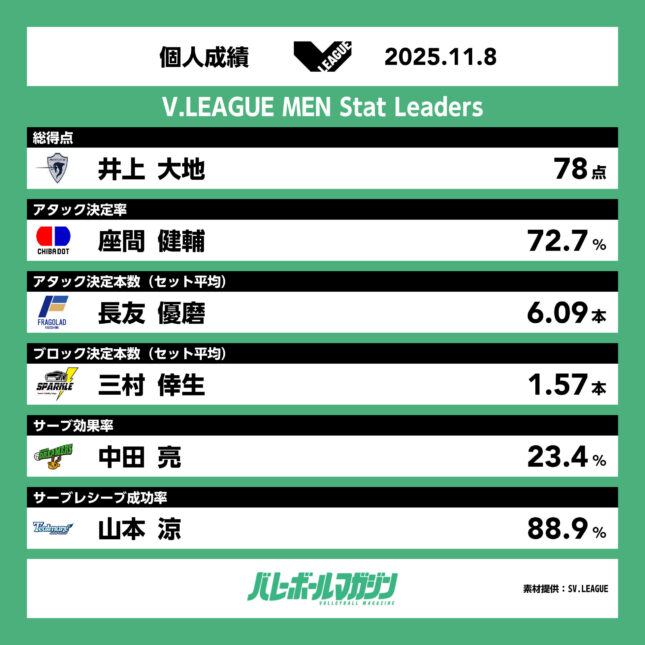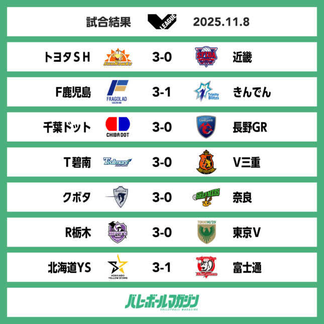 8日、バレーボール男子・V.LEAGUE MENは東西計7試合が行われた。