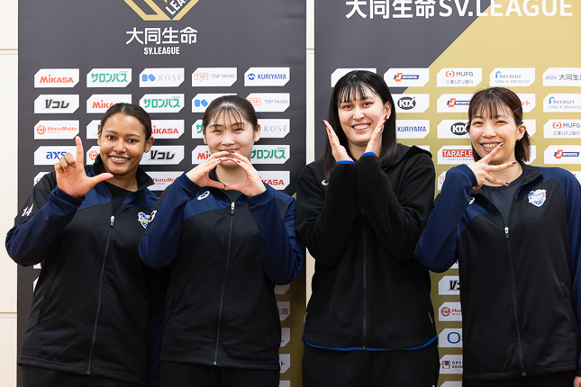 - 東京サンビームズ・森田英莉主将、久保木若菜、小泉海藍、ハンダスレン・ガントグトフ、今村芽維「こちらが先手を取っていく、そしてボールを落とさない執念をもってどんな相手にも立ち向かっていく」 V女子 [V女子] / 2025.10.30