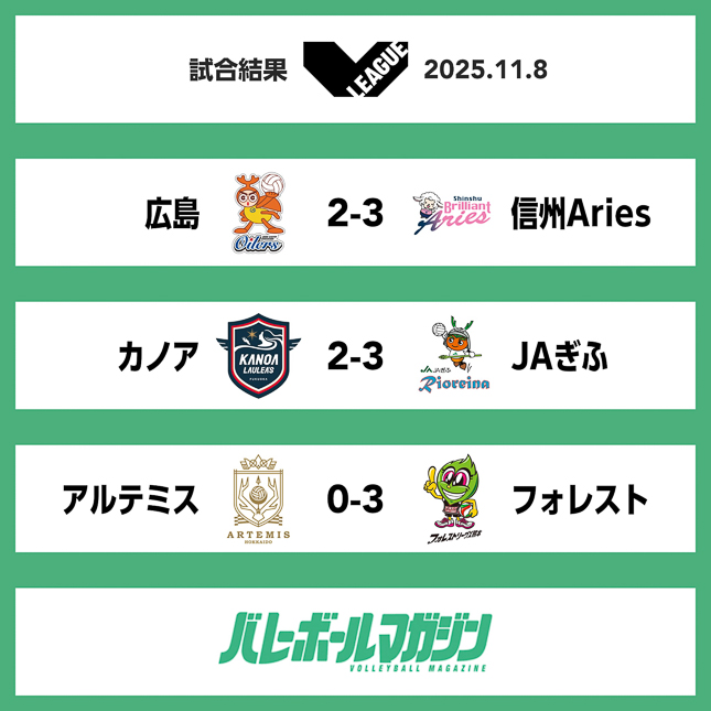 - 東西全チームが初戦を終える。8日は7試合すべてホームチームが勝利 V男子 [V男子] / 2025.11.09