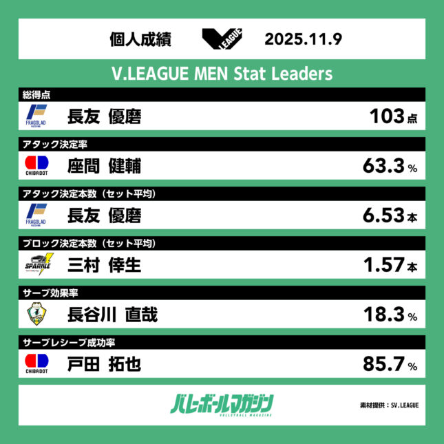 - 大阪Bとサントリーが5勝目。STINGS愛知が広島THにGAME2でリベンジし、3位に浮上 SV男子 [SV男子] / 2025.11.10