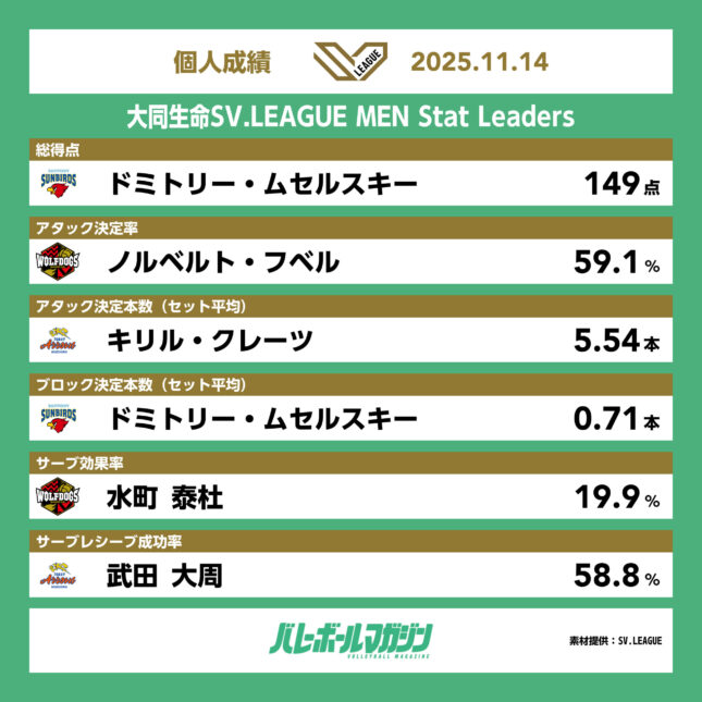 - WD名古屋が東京GBにストレートで先勝 SV男子 [SV男子] / 2025.11.14
