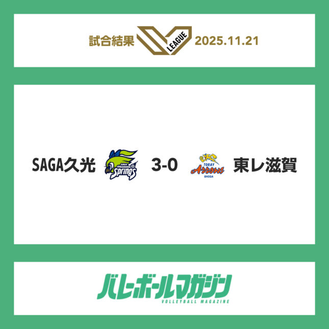 SAGA久光スプリングス 3 – 0 東レアローズ滋賀