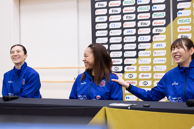西川:(隣の上村選手を指さして)コレを筆頭に元気で、エネルギッシュで明るい雰囲気が持ち味だと思います。バレースタイルも勢いづいたら、どこまででもいけちゃうみたいなところもあるので、エネルギッシュな若い子たちが先頭に立って、チームの士気を上げてくれたらいいなと思っています。