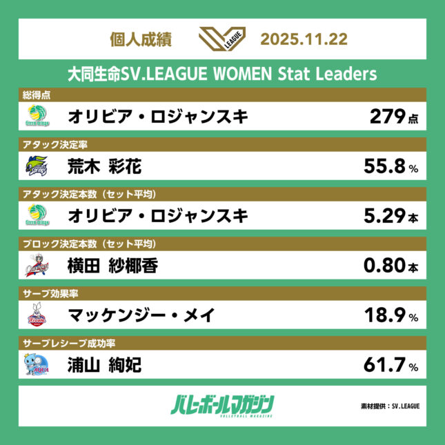 大阪MVが4位に浮上。姫路が10勝目。SAGA久光が11連勝 SV女子