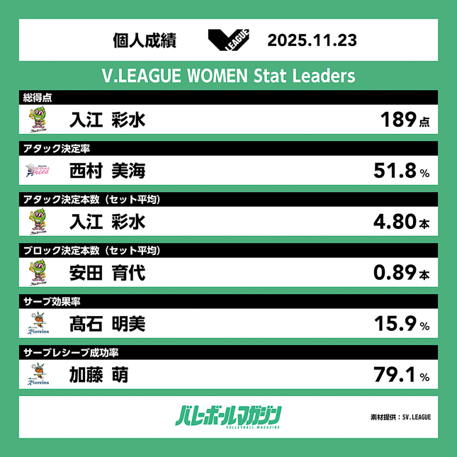- 全試合アウェイチームの2勝で今節を終える。STINGS愛知が4位に浮上 SV男子 [SV男子] / 2025.11.24