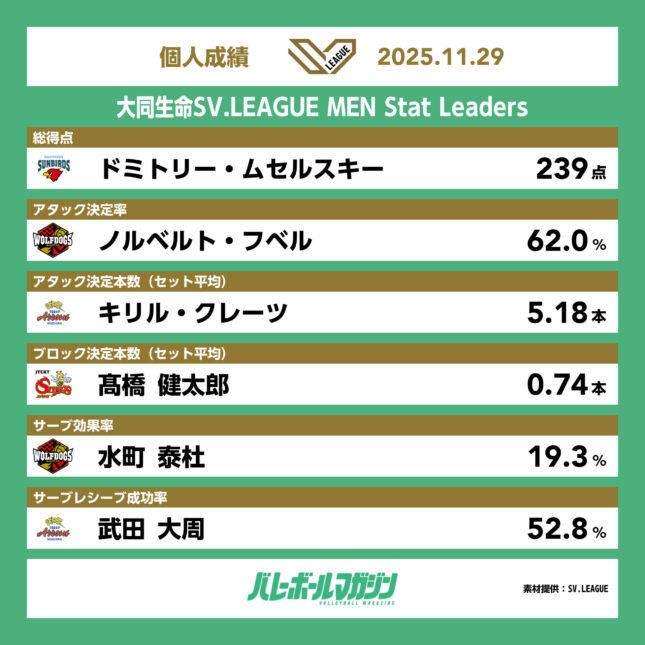 - ナイトゲーム2連戦はSTINGS愛知の2勝で終える SV男子 [SV男子] / 2025.11.29