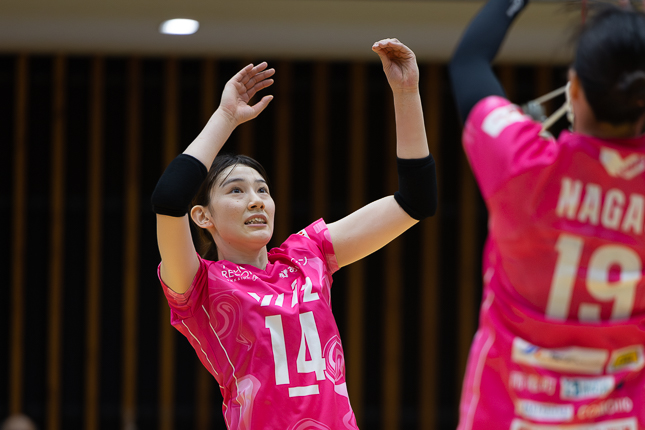 強力な得点源はないものの、堅守と経験豊富なセッター・長尾のどかのトスワークで試合を組み立てた。