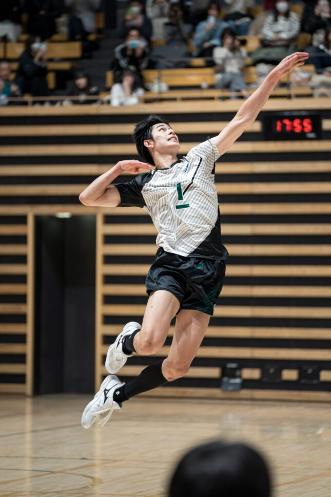 ともにシニア代表選手を擁する注目の専修大(甲斐優斗 パリ五輪出場)対法政大(高橋慶帆 アジア大会出場)は、専修大が2セットビハインドの崖っぷちからフルセットにもちこみ、最終セットも競り勝って大逆転で準々決勝進出を決めた。