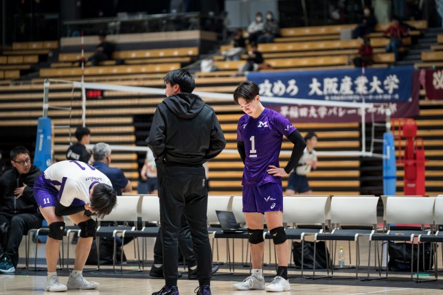 関東1部で今年春夏連覇を果たした早稲田大はストレートで中京大を下し、ここまで1セットも落とさずに準決勝に進出。関西勢同士の対戦となった大阪産業大対近畿大の試合は、近畿大が3-1で勝利し、ベスト4入りを果たした。