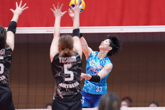 濱田:相手のブロックは高いので、ゆっくりとしたテンポだとブロックにつかまってしまうので、私がじらして(少し間を取って)そこから速いテンポで取ろうとスパイカーと会話ができました。