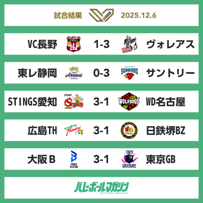 6日、バレーボール男子・大同生命SV.LEAGUE MENはGAME1の5試合が行われた。