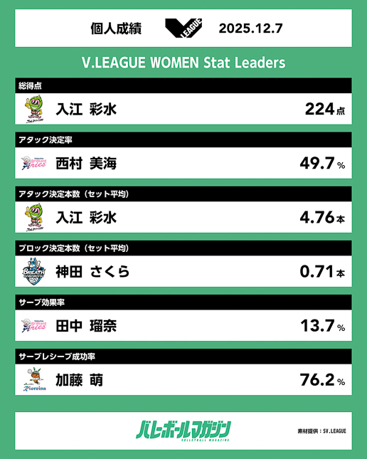 【V.LEAGUE WOMEN・7日の結果】