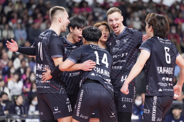 男子の第1試合はともに初の決勝進出を目指すヴォレアス北海道と東京グレートベアーズが対戦。東京GBが苦しみながらも2セットを先取するが、ヴォレアスがデュースの末に第3セットを26-24で取り返すと、第4セットも25-20で連取する。フルセットに持ち込んだヴォレアスはそのまま流れに乗り、最終セットも15-11で奪取し、逆転勝利。激闘を制し、創部以来初の決勝進出という快挙となった。