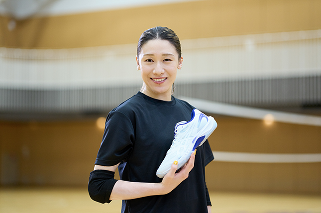 石川真佑選手と最新モデル「V-SWIFT FF 5」©ASICS