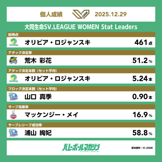 - 東京GB、サントリー、WD名古屋が2勝で今節を終える。年明けは1月3日に再開 SV男子 [SV男子] / 2025.12.30