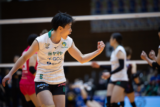 第1セット序盤は埼玉上尾さんの良いディフェンスとオフェンスに押されてしまいました。後半にかけて自分たちの粘り強いプレーが出て、試合を勝ち切れたことはとても良かったと思います。