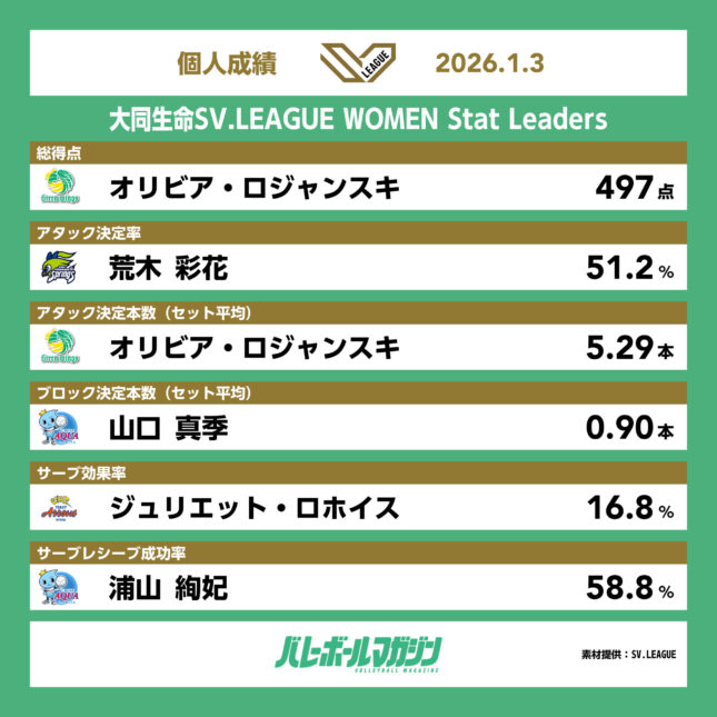 大同生命SV.LEAGUE WOMEN・3日の結果