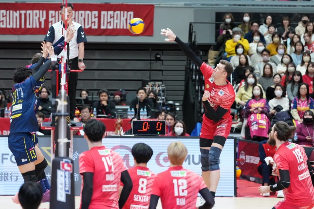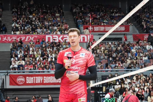 Asue アリーナ大阪ではサントリーサンバーズ大阪と東京グレートベアーズが対戦し、ストレートでホームのサントリーが勝利。17勝目を挙げ、首位をキープした。東京GBは順位を1つ下げて6位に後退した。この試合の後、サントリーのドミトリー・ムセルスキーがホームのファンに向けての挨拶の中で、今季限りでの現役引退を発表した。