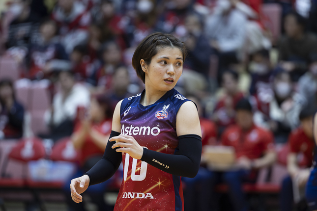 「若い選手に求められることと、自分に求められることは全く違うと思っています。安定感のあるプレーだったり、最後まで泥臭くやることが私の役割です。身長が小さい分、ディグだったり、守備の面でどう貢献していくかというのも私の課題ですね。今はスタートで出ていますけれども、もっと突き詰めないといけないと感じる部分です」