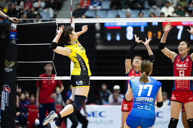 1月18日、バレーボールSVリーグ、NECレッドロケッツ川崎対KUROBEアクアフェアリーズ富山は、ホームのNEC川崎が3-0で勝利し、首位の貫録を見せた。