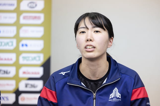 野嶋:相手はゲームタイムで戦術を変えてくるチームで、私が打った後にタイムを取られて、その後も変えてきていました。そういうところで空くスペースが変わってきたと思うので、コーチと連携を取り、穴を探しながら打っていました。