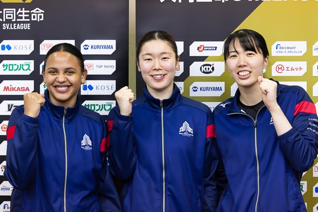 また、シーズン途中で加入した新セッターのカミラ・デ・ラ・ローザ(ドミニカ共和国出身。佐藤淑乃と同い年の24歳)も2セットに2枚替えで出場。ここまで6試合に出場している。今回は、”ミドルズ”の2人と新戦力のカミラに話を聞いた。