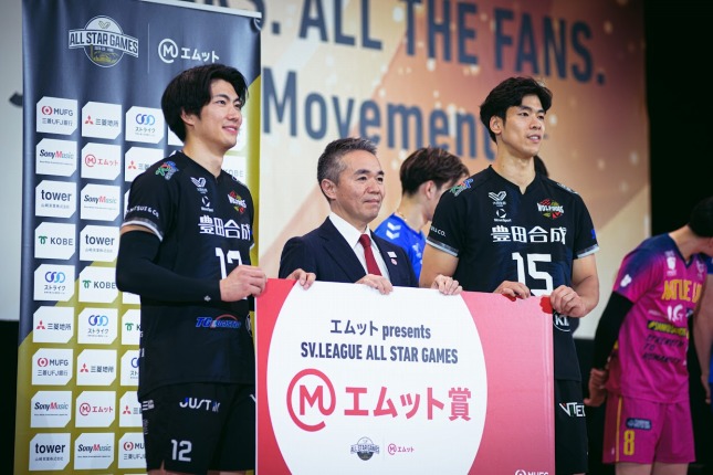 また、今回の試合でサーブスピードで124.1キロの記録を出したトリー・デファルコ(TEAM KENTO/STINGS愛知)と水町泰杜の2選手が「スピードキング賞」、西本圭吾(TEAM KENTO/広島TH)が「ベストエンタメ賞」を受賞した。