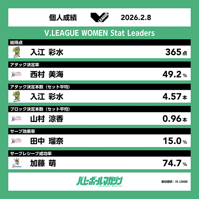- 1・2位対決はフルセットでNEC川崎に軍配。3位・大阪MVはアウェイで21勝目 SV女子 [SV女子] / 2026.02.08