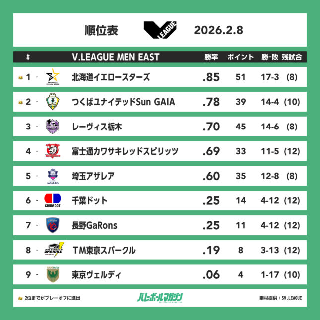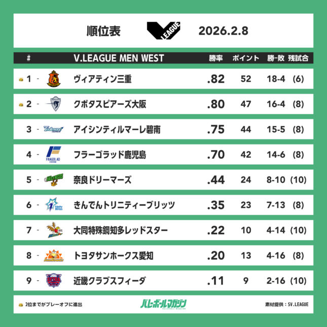 - アウェイ4チームが2勝。上位対決はサントリーの2勝で終える SV男子 [SV男子] / 2026.02.10