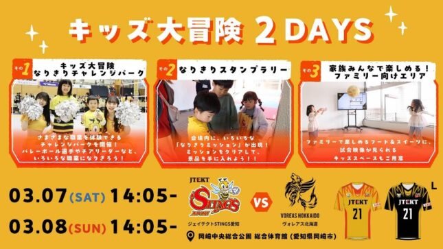 STINGS愛知 3月7日(土)8日(日)ホームゲームにて『キッズ大冒険 2DAYS』を開催