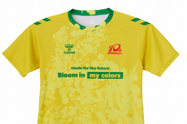 選手たちが着用するミモザシャツは、左胸にアランマーレの10周年ロゴを配置した記念モデル。アランマーレミモザシャツの販売は、ホームゲームで実施される。
