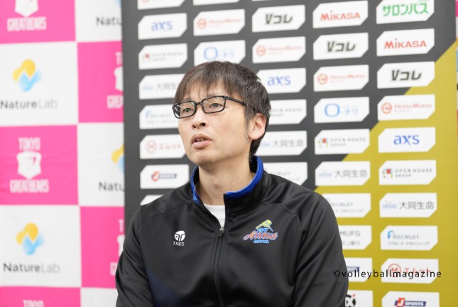 阿部:相手のレフトサイドからの攻撃の数字が抑えきれなかったので、そこに高さのある選手をブロックでマネージメントしながら行く考えの中で投入しました。