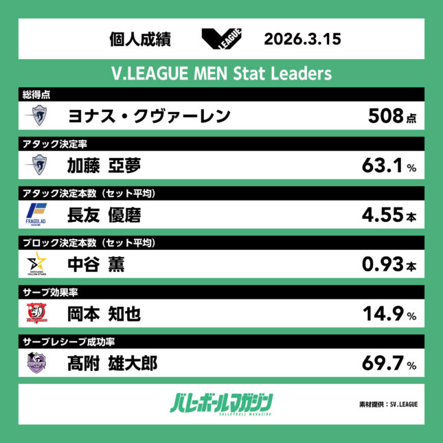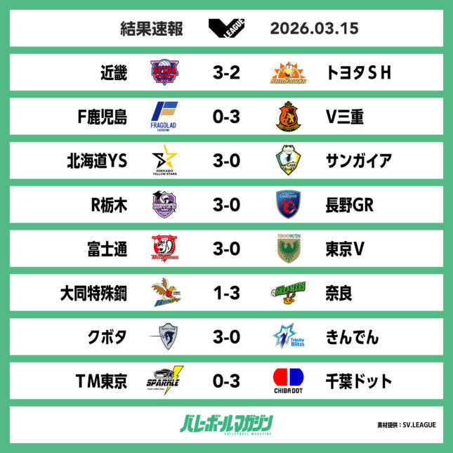 V.LEAGUE MEN・15日の結果