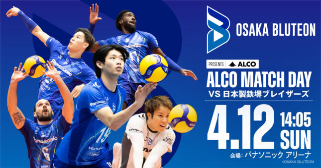大阪ブルテオンは4月12日(日)ホーム最終戦(VS.日本製鉄堺ブレイザース)にて、パートナー契約を締結しているアルコ株式会社の協賛を得て「ALCOマッチDAY」を開催する。
