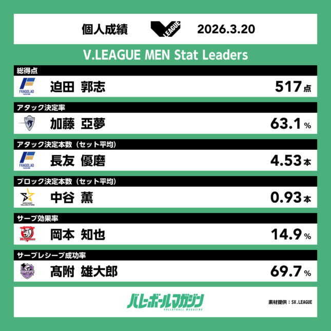 - デンソーが大阪MVにアウェイでストレート勝利 SV女子 [SV女子] / 2026.03.20