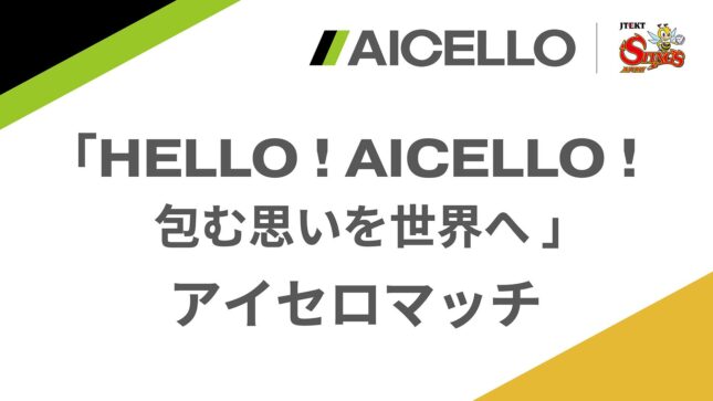 ジェイテクトSTINGS愛知は、4月19日(日)に岡崎中央総合公園 総合体育館(愛知県岡崎市)にて行われるSV.LEAGUE MEN レギュラーシーズン 第22節 GAME2 VC長野トライデンツ戦を株式会社アイセロ協賛による『「HELLO!AICELLO!包む思いを世界へ」アイセロマッチ』として開催する。