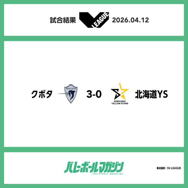 - クボタと北海道YSが決勝進出。北海道YS・都築仁「ウィニングポイントは派手に決めたい気持ちもあったが、確実にいった」V男子セミファイナル [V男子] / 2026.04.12