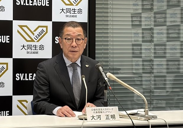 バレーボールSVリーグを運営する公益財団法人SVリーグは15日に理事会を開催し、メディア向けの報告会を行った。登壇者は大河正明チェアマン。