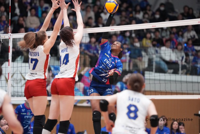 PFU・バルデスメリーサ「大事なところでミスをしていることが多いので、ミスをしないで自分のチームに得点を与えられるよう頑張りたい」 SV女子QF会見