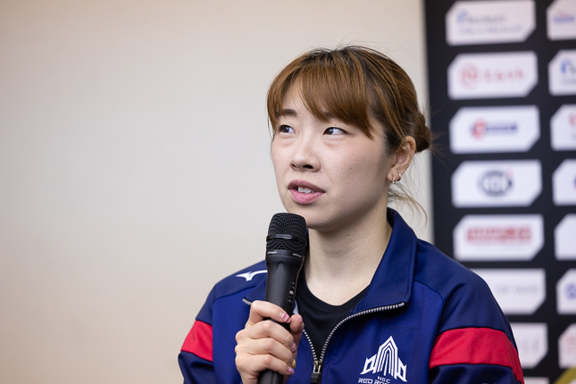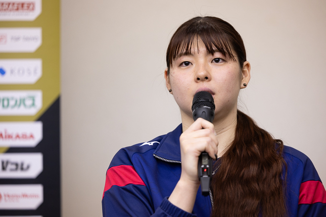 クルー(ファン)の皆さんに応援してもらえるチームだなっていうのをこの2日間で改めて感じました。プレーというか、バレーの部分では、まだ2日間を振り返ってというところは、ちょっと私はお答えできることがないかなっていうのが今の正直な気持ちです。