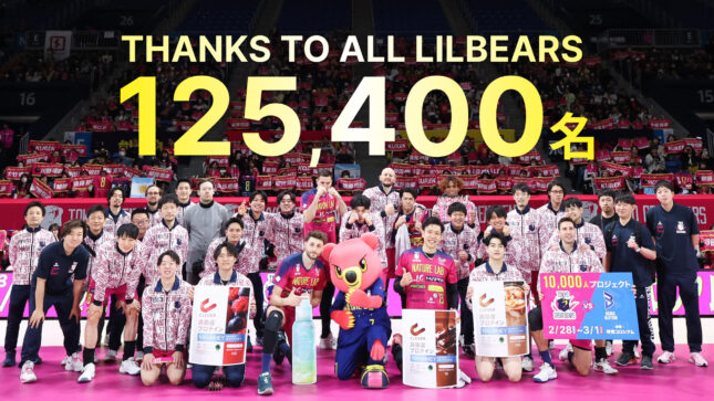 東京グレートベアーズは、2026年4月18日(土)に有明コロシアムにて開催した、2025-26 大同生命 SV.LEAGUE MEN 東京グレートベアーズ vs サントリーサンバーズ大阪戦にて9,539名を動員し、2025-26シーズンの目標として掲げた『ホームゲーム来場者数12万人』の達成、大同生命SV.LEAGUE過去最多のシーズン総入場者数125,400名を記録したことを発表した。