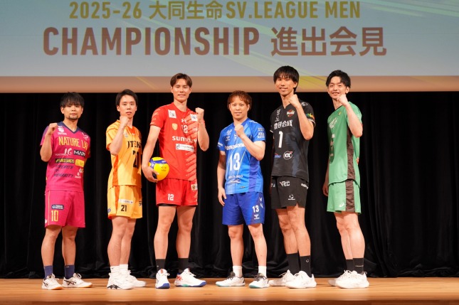 バレーボール2025-26 大同生命SV.LEAGUE MENは23日、東京都内でチャンピオンシップ(プレーオフ)進出6チームによる記者会見を行った。登壇選手はサントリー・髙橋藍、大阪B・山本智大、STINGS愛知・高橋和幸、WD名古屋・山田脩造、東京GB・古賀太一郎、広島TH・井上慎一朗。